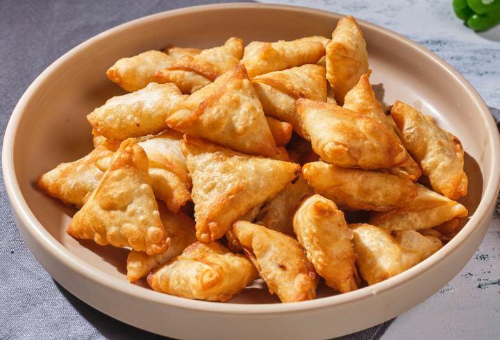 Les samoussas au paneer: croustillants à l'extérieur avec une farce fondante. Meyer avek enn bon satini !