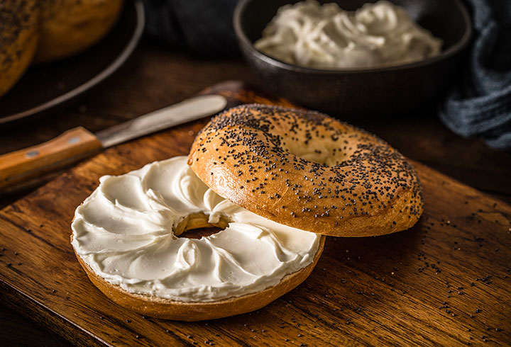 Comme petit-déjeuner, déjeuner ou casse-croûte, ce bagel au cream cheese vous fera voyager à New-York ✈ Découvrez comment préparer des bagels et un cream cheese onctueux !