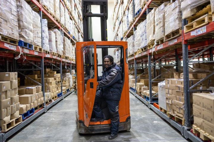 Notre forklift driver, Désiré.