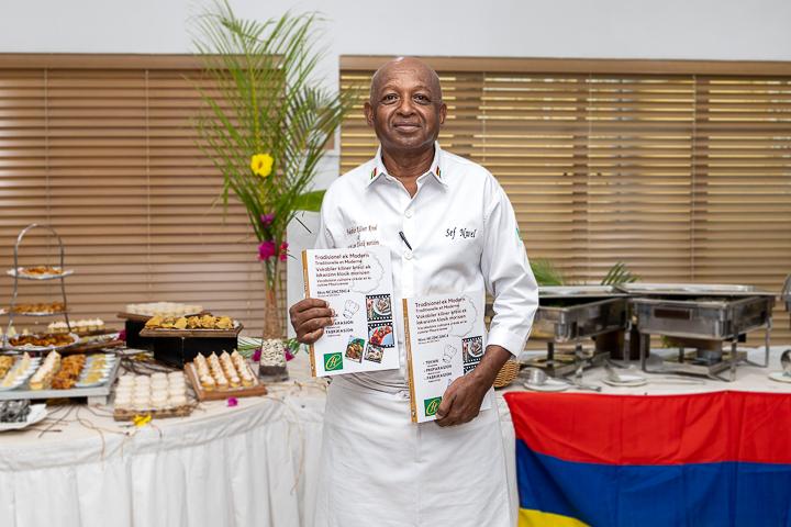 Le Chef Noel Chelvan débute en 1979 comme plongeur à l'hôtel Paradis et a su à force de persévérance gravir les échelons jusqu'à devenir un chef reconnu. Son livre, ‘Vokabiler kiliner kreol ek lakwizinn klasik morisien ‘, fruit de douze années de travail acharné, représente bien plus qu'un simple recueil de recettes. Il s'agit d'un véritable manuel d'apprentissage, offrant aux élèves de l'école une immersion complète dans l'univers de la cuisine mauricienne. De l'apprentissage du jargon culinaire aux techniques de coupe et de cuisson, en passant par les secrets des sauces, ce manuel est un véritable outil pédagogique qui prépare les futurs chefs à relever tous les défis qu'ils pourraient rencontrer en cuisine.