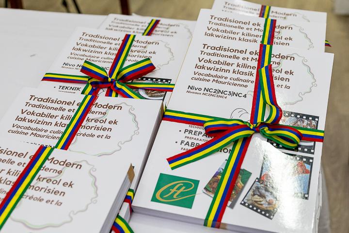 Lancé le 06 mars 2024 à l'école hôtelière Sir Gaëtan Duval le manuel culinaire ‘Vokabiler kiliner kreol ek lakwizinn klasik morisien’ incarne, au-delà de son aspect pratique, ‘un véritable trésor’ selon les mots du Cardinal Piat. Il reflète la diversité et la richesse des traditions gastronomiques de l'île Maurice, tout en étant un outil pédagogique essentiel pour les générations futures. Comme l’a souligné le Chef Noël Chelvan, priver un élève de sa langue maternelle c’est ‘mett enn baraz ant li ek mwa’. Cette affirmation résonne particulièrement dans le contexte de la préservation du créole mauricien, qui est également au cœur de cet ouvrage. Écrit dans un langage accessible à tous, le livre du Chef Chelvan contribue à la préservation et à la transmission d'un héritage culinaire précieux.