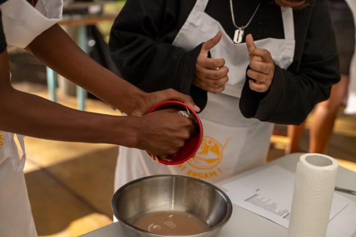 Le programme comprend cinq ateliers pratiques, animés par des formateurs de l’Académie Internationale des Chefs, notre partenaire externe. Chaque session aborde un défi concret : cuisiner quand les placards sont vides, optimiser les courses, préparer un repas de fête avec un petit budget, ou encore gérer intelligemment les restes. L’approche est résolument participative et centrée sur des solutions simples, transférables dans la vie de tous les jours. Les participants cuisinent eux-mêmes, testent, échangent et apprennent en faisant.