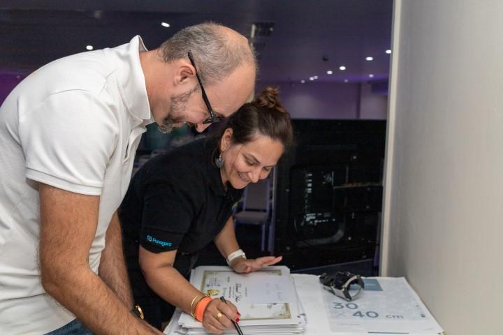 Arnaud Huck, Head of Commercial remet le certificat à Andrew, Roy et Steeve de Panagora