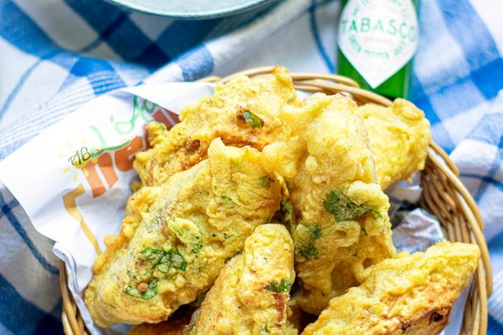 5. Égoutter sur un papier essuie-tout et servir chaud avec enn bon satini au Tabasco.
