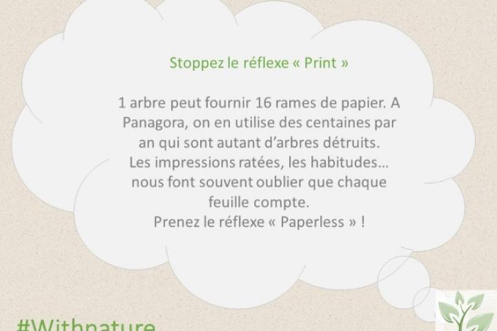 Panagora a lancé une "Green Week" autour de 4 thèmes : se connecter à la nature, économiser de l'énergie, recycler/réutiliser des objets et préserver l'eau et les océans. Du 5 au 9 juin, nos employés ont été invités à découvrir les bons gestes à adopter ainsi que l'impact de leur entreprise sur l'environnement.