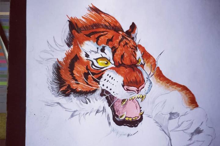 Il m’a initié mais jamais il n’a cherché à m’influencer ou me forcer à apprendre. Il me disait toujours, « Kontign aprann, sey seye, trase par to mem ziska to konpran li. » J Je continue à suivre ce conseil même aujourd’hui. Du coup, mon truc à moi c’est le dessin :). Mon ‘medium’ préféré c’est le ‘marker’.
