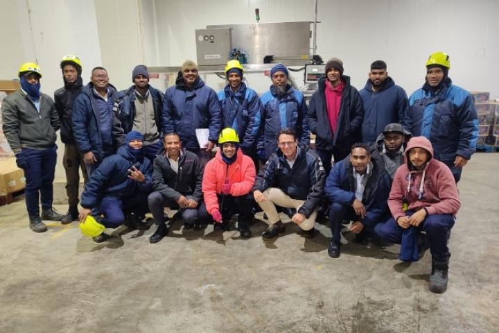 De gauche à droite: Kursley (Warehouse Manager), Dylan et Joel (Head of Logistics)