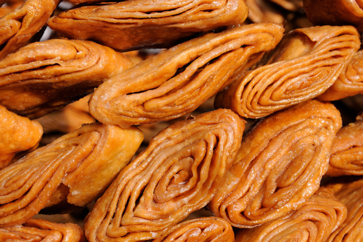 • Tremper chaque Khaja dans le sirop chaud pour les enrober complètement.